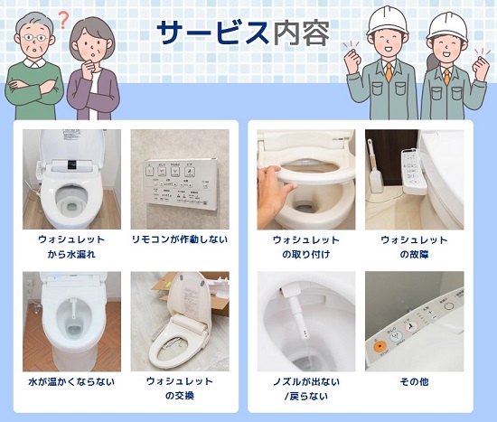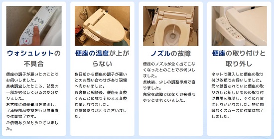 一宮市で対応可能な温水便座、ウォシュレットの修理サービスとなります。その他のトラブルやご相談に関しましてはお気軽に受付窓口までお問い合わせください。